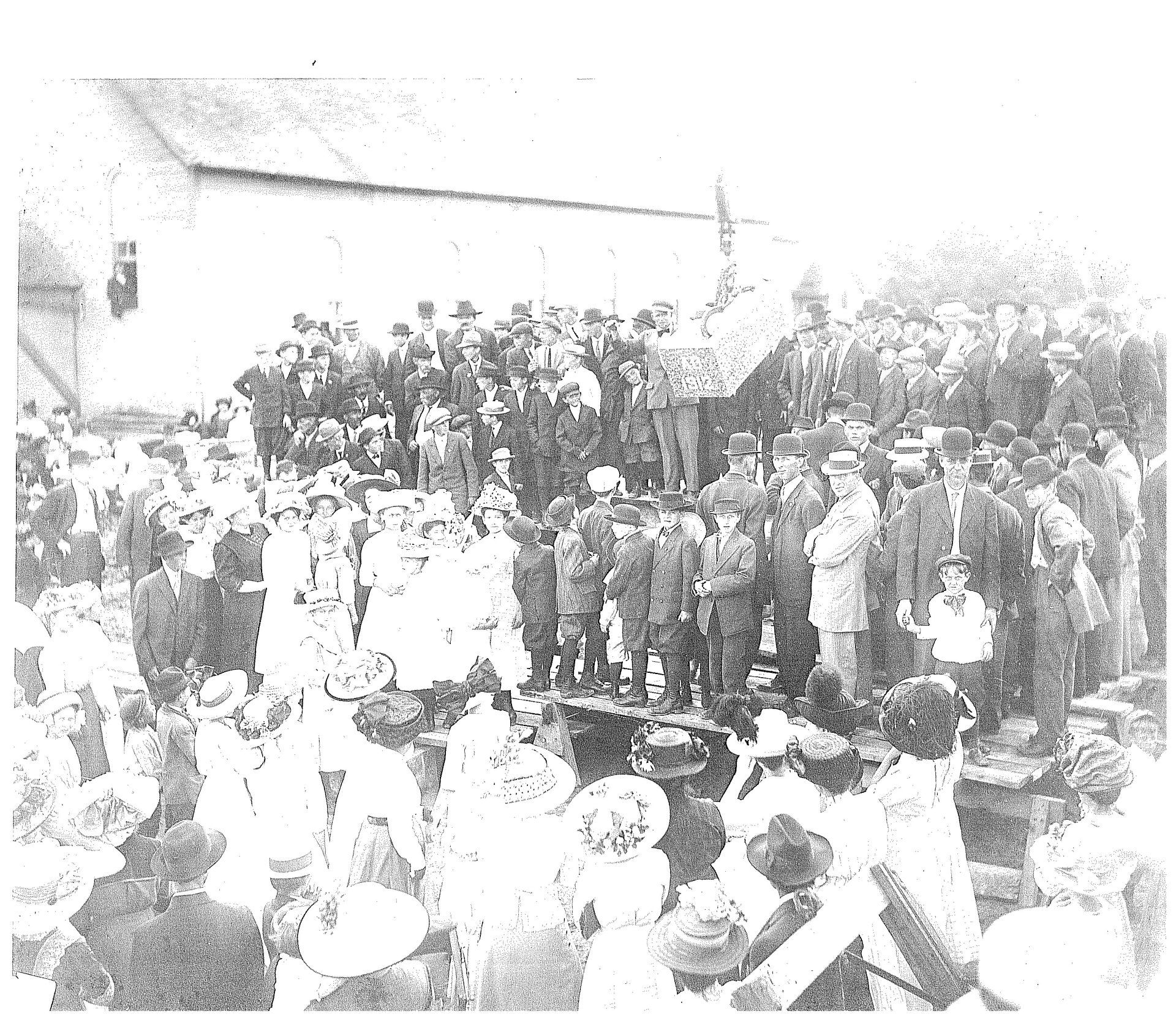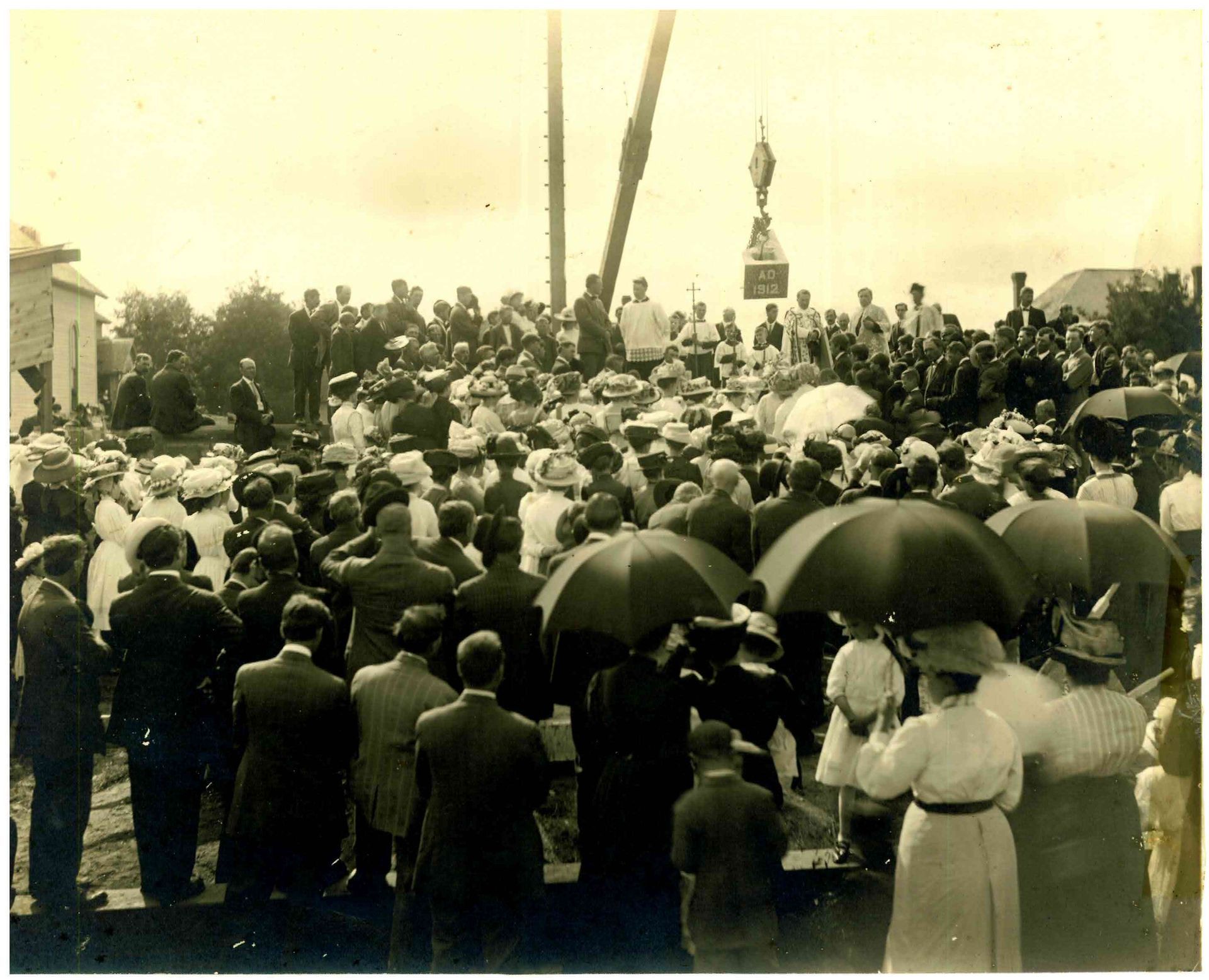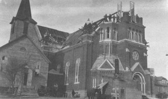 1912 The church community outgrew the small wooden church. A magnificent brick church was built. The winning contractor's bid was around $48,000. The cornerstone for the church was laid on August 12. Parishioners helped build the church. They hauled building materials with horses and wagons. The church was fully constructed after a year and a half.