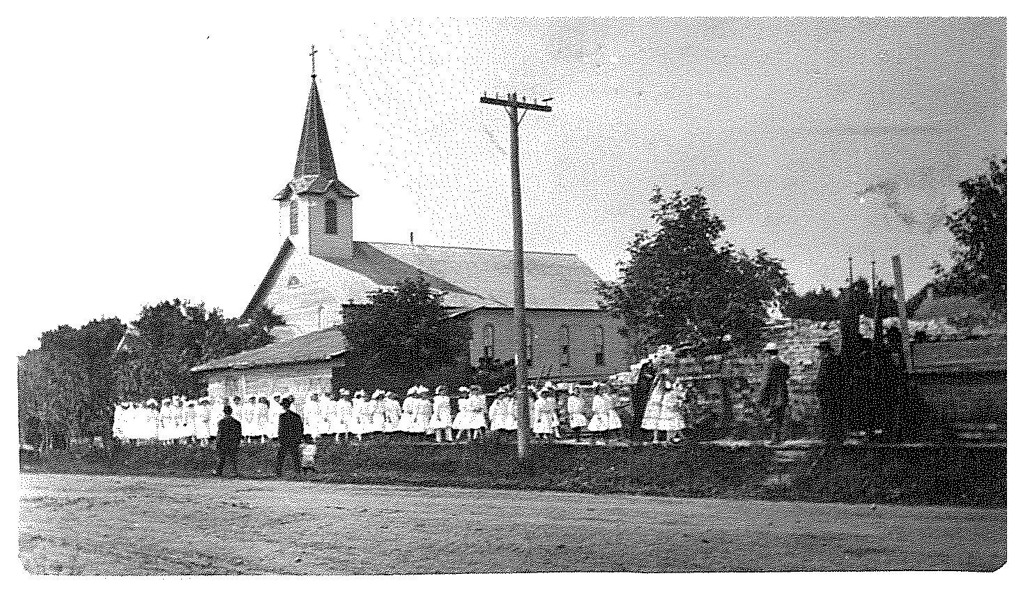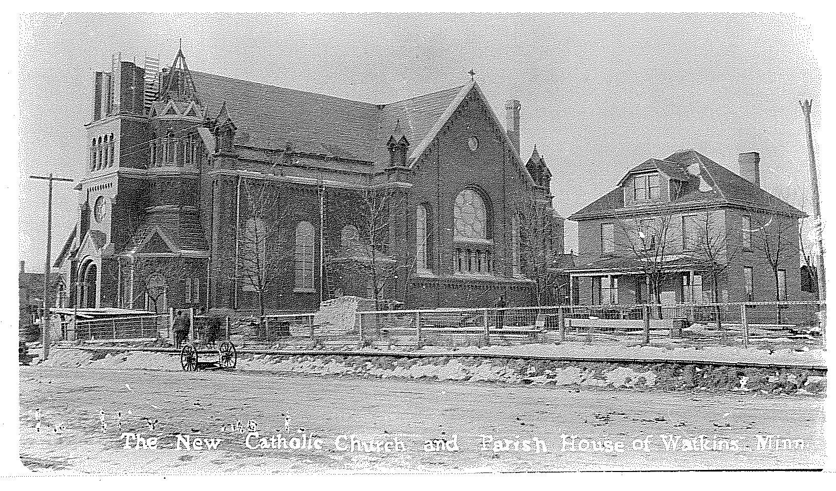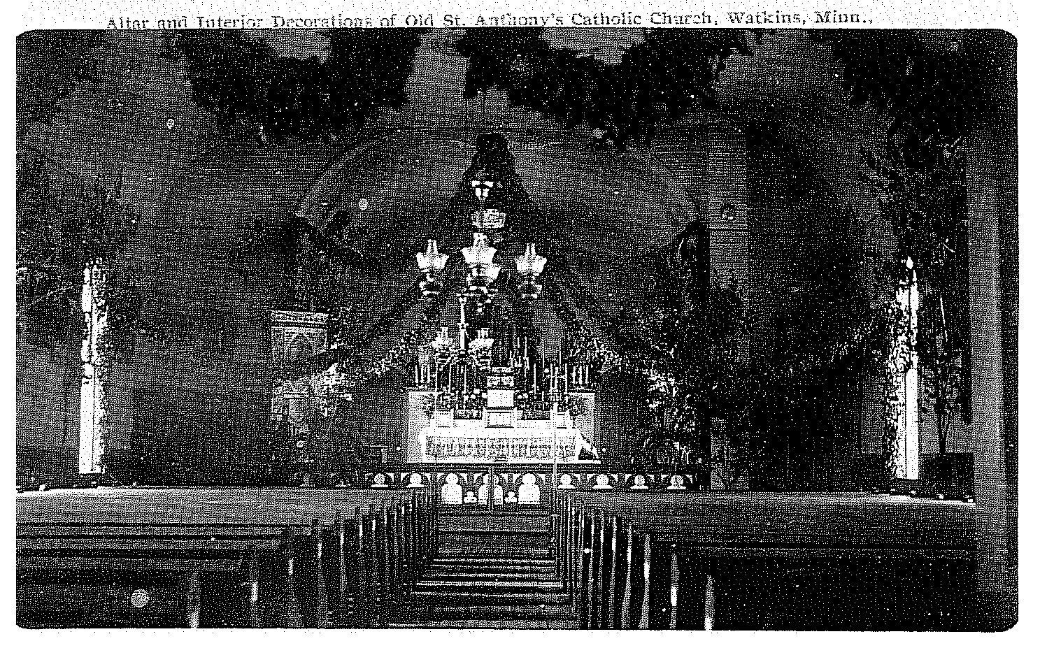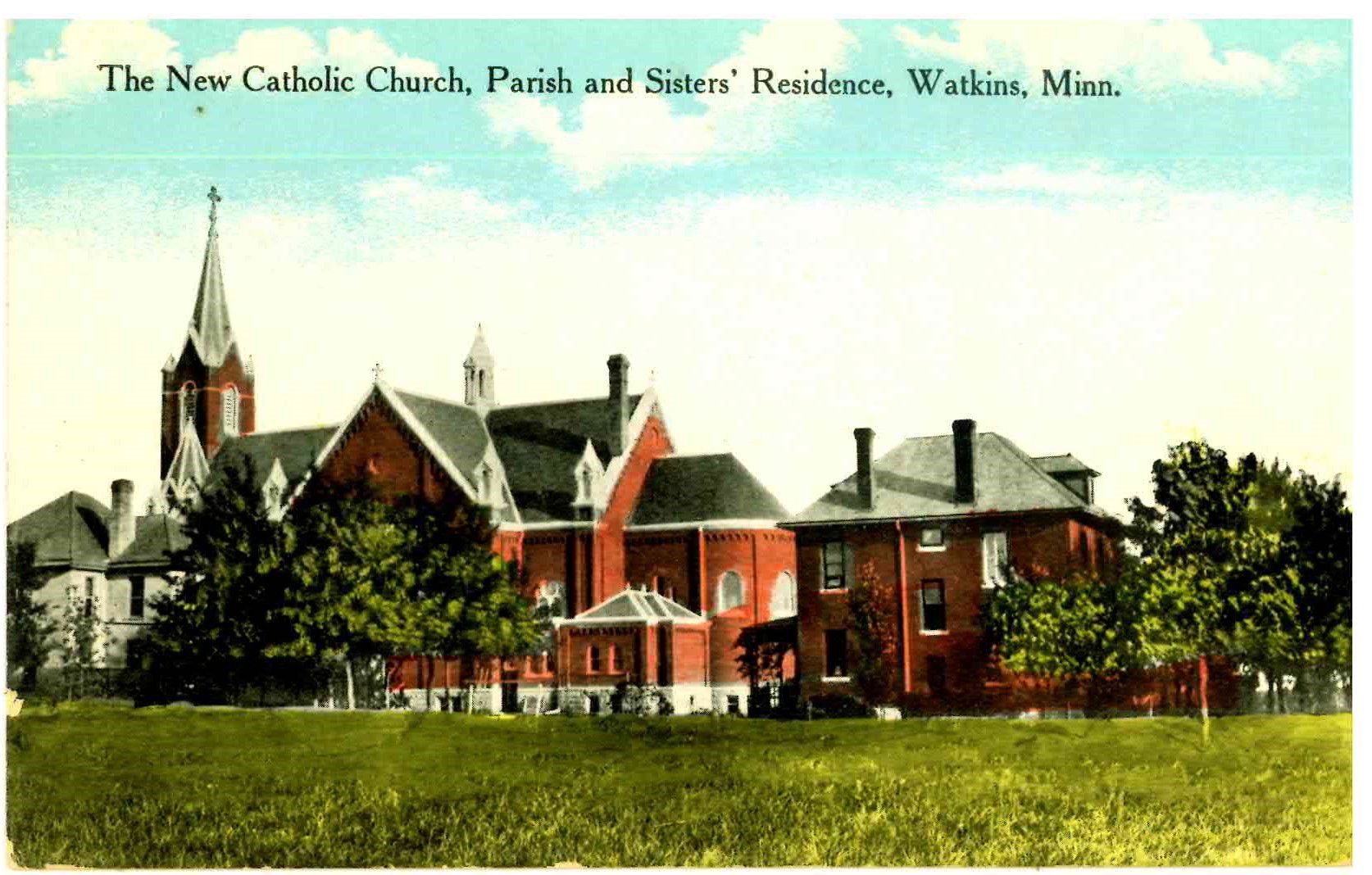 The Church Community was established in 1889 when a small wooden frame church was built. Mass was being said in parishioners homes several years before the church was built. There were other churches in the immediate area. St. Anne’s about 2 miles East of Watkins, Old St. Nicholas about 6 miles North, and a church in Logering (German word for popple bush) about 4 miles West of Watkins. The present church was built in 1912 on the site of the old frame church which was moved off its foundations. A wooden frame school was built in 1906 and was served by the Benedictine Sister of St. Joseph until May of 1995 when it closed because of small classes and lack of funds.